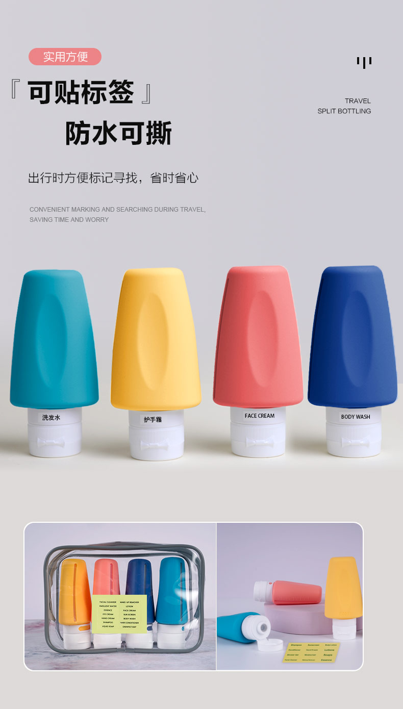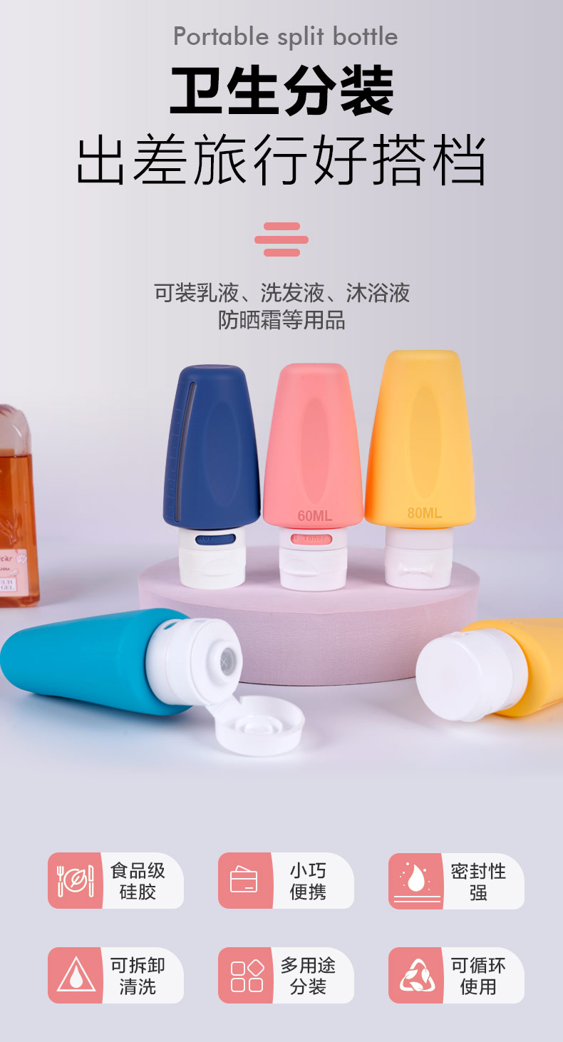 您的位置:首頁(yè) > 產(chǎn)品中心 > 硅膠家居用品 > 防漏硅膠分裝瓶便攜式出差旅行洗漱分裝瓶套裝化妝瓶乳液瓶