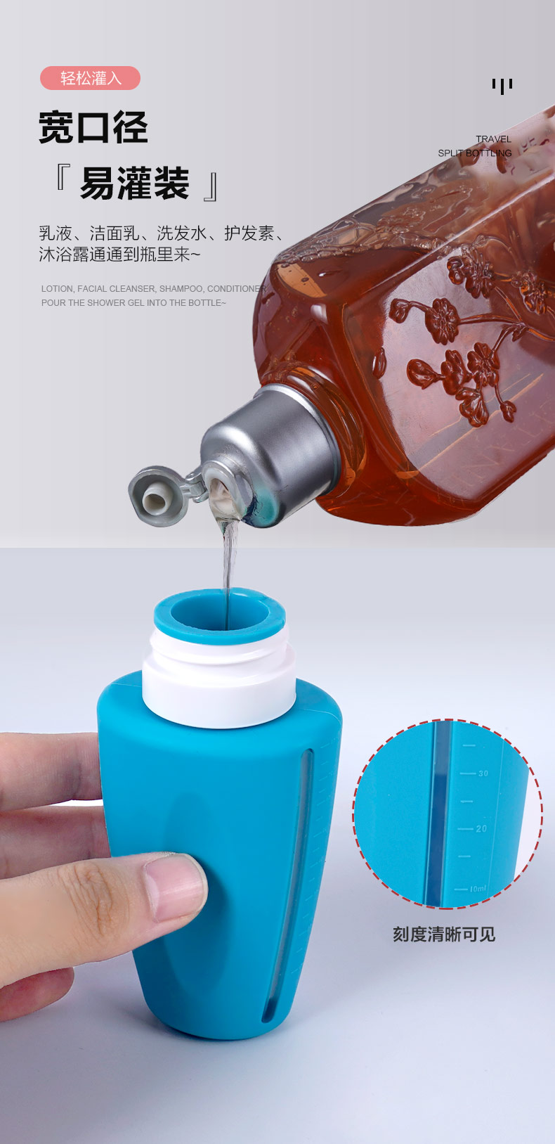 適用: 可分裝洗發(fā)水、沐浴露、身體乳液、護(hù)膚品、護(hù)發(fā)素、