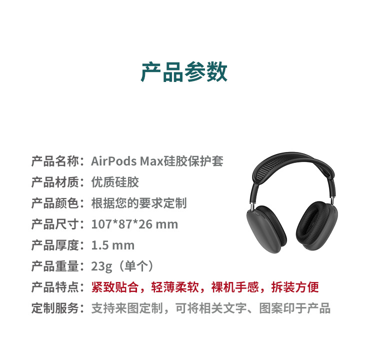 您的位置:首頁 > 產(chǎn)品中心 > 硅膠定制 > 手機(jī)平板硅膠套 > 蘋果AirPods Max掛耳式藍(lán)牙耳機(jī)硅膠保護(hù)套定制