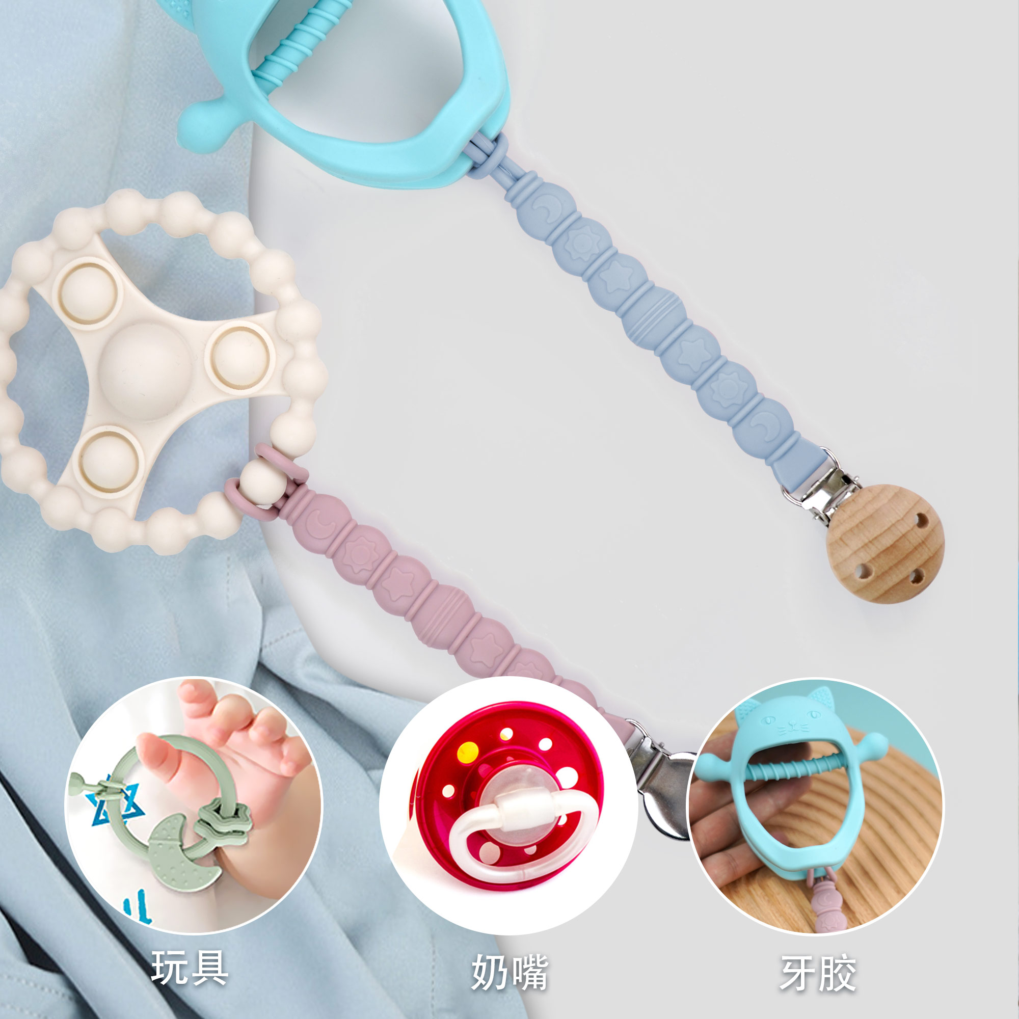 防掉鏈硅膠奶嘴鏈 嬰兒食品級可水煮防掉鏈牙膠